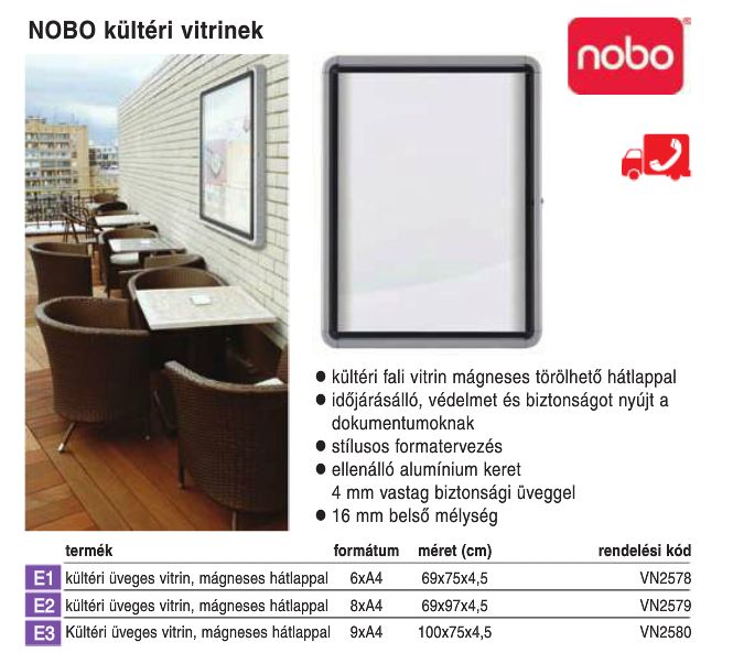 | Tábla vitrin kültéri fehér mágneses Nobo | Akció | Nettó ár | Bruttó ár | |||